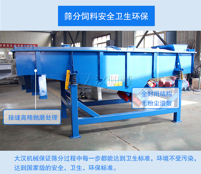 大漢機(jī)械生產(chǎn)的1540型直線振動(dòng)篩采用多種等級(jí)碳鋼、不銹鋼精制而成,內(nèi)部所有接縫高精拋磨處理,密封件材質(zhì)均符合養(yǎng)殖業(yè)的安全標(biāo)準(zhǔn)。它全封閉的結(jié)構(gòu)也可保證飼料在篩分過(guò)程中無(wú)粉塵溢散等情況發(fā)生。