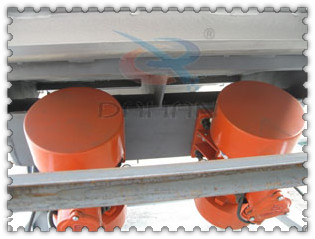 5、電機(jī)臺座:安裝振動電機(jī),使用前連接螺釘必須擰緊,特別是新篩機(jī)試用前三天、必須反復(fù)緊固,以免松動造成事故。